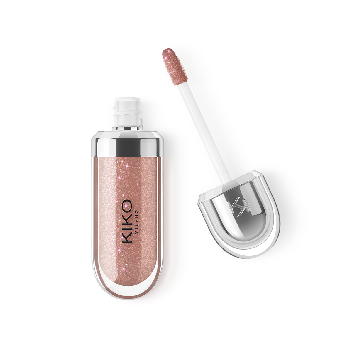 Современная упаковка выделяется металлическим колпачком и логотипом «KK» сбоку. Мягкий аппликатор создан, чтобы подчеркнуть сияющую текстуру и точно очертить контур губ.