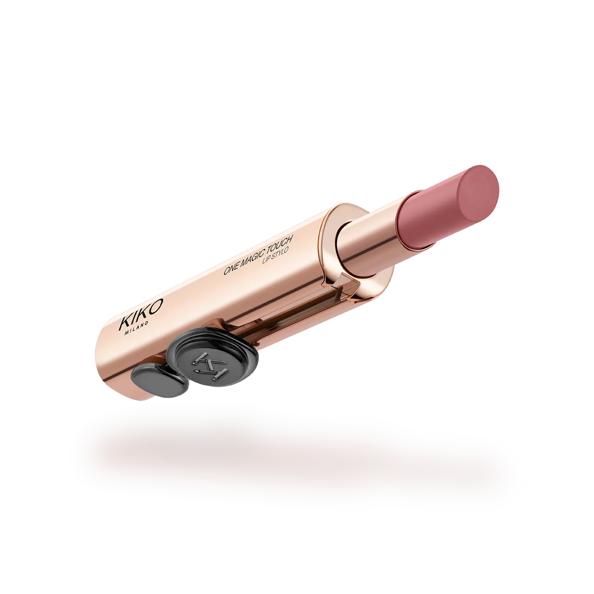 - Чтобы открыть: Легким движением, нажмите на верхний колпачок с логотипом KIKO и сдвиньте механизм вниз — помада появится.