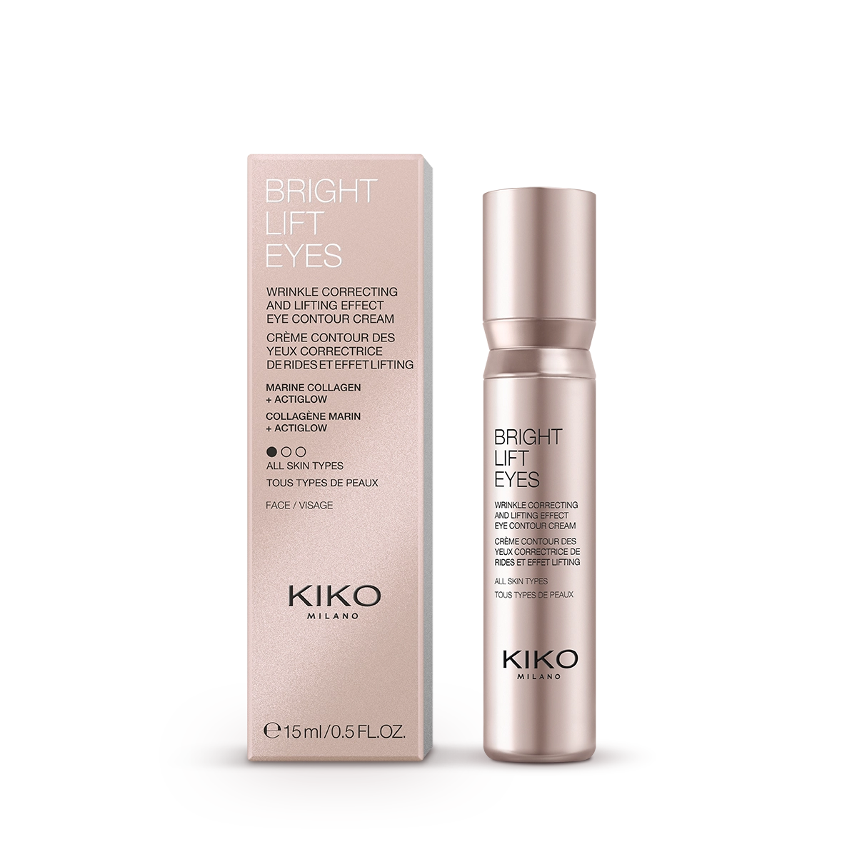 Увлажняет кожу вокруг глаз надолго. Уменьшает морщины, припухлости, мешки и тёмные круги под глазами. Сияющая кожа в тонусе. Продукт способствует лучшей стойкости макияжа.